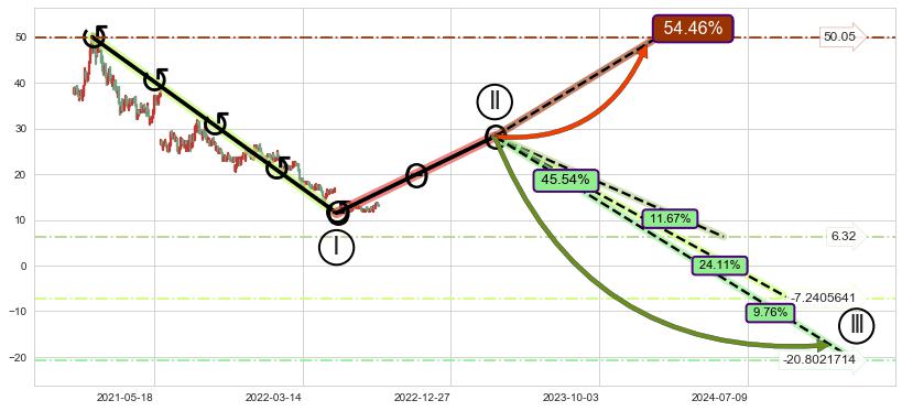 ➢ 高概率大级别循环下跌浪被破坏,反转向上(突破5浪起点)概率54.46%