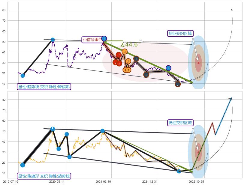 ➢ 趋势线属【中级别信号事件】降旗形属【长级别信号事件】中长周期组合信号事件,中长事件长度比51.16%