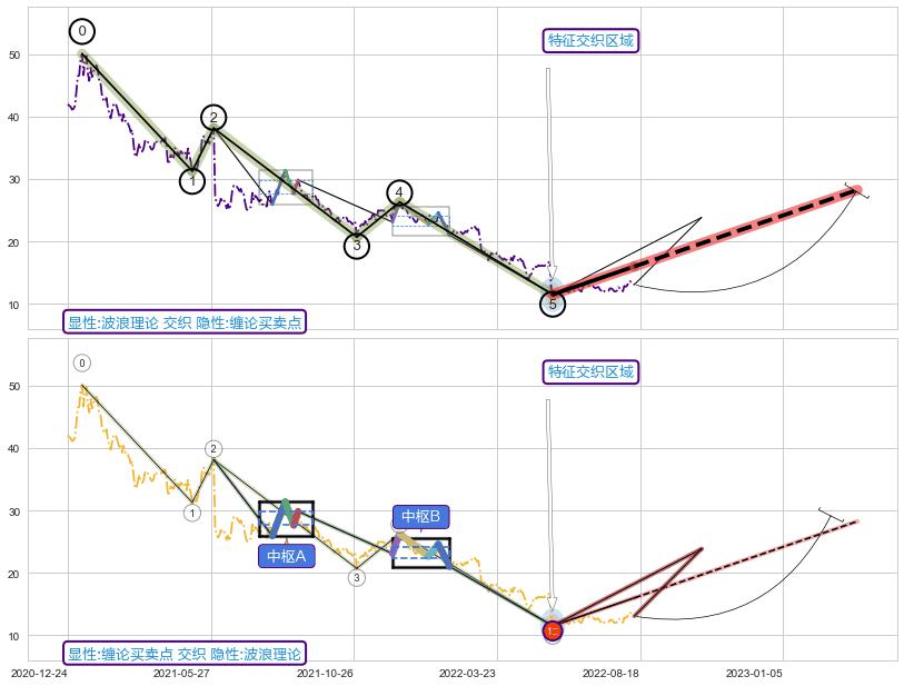 ➣ 【中枢B】:2021-12-02-2022-01-28,中枢由5笔构成,共41交易日, ZG=24.59, ZD=23.10