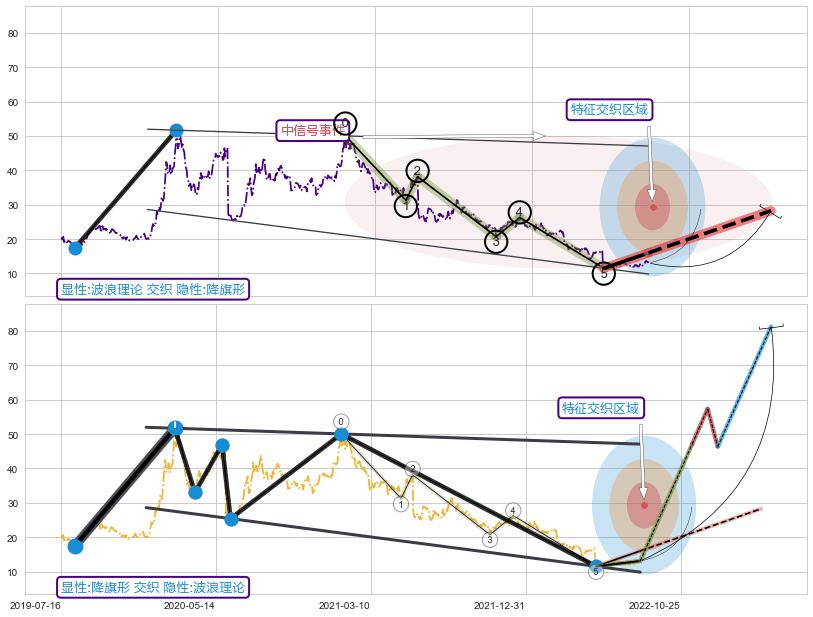 ➢ 波浪理论属【中级别信号事件】降旗形属【长级别信号事件】中长周期组合信号事件,中长事件长度比52.94%