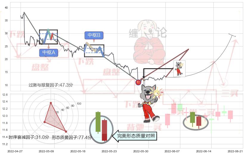 ➢ 🕰 价格走势在2022-06-14至2022-06-14期间形成锤头线(锤子线),残存影响值:4.13