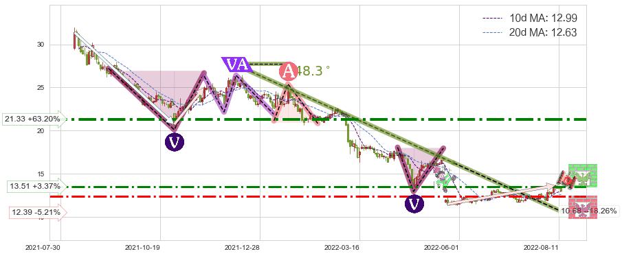 ♘ 阻力价格位13.51,可信任强度62.94%,距离最后交易2022-08-12形成的收盘价格13.07相差 +3.37%