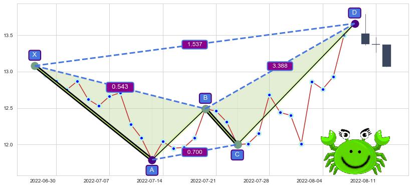 ➣ 已完成【螃蟹】形态起点X: 2022-06-28, 终点D: 2022-08-09, 共31交易日