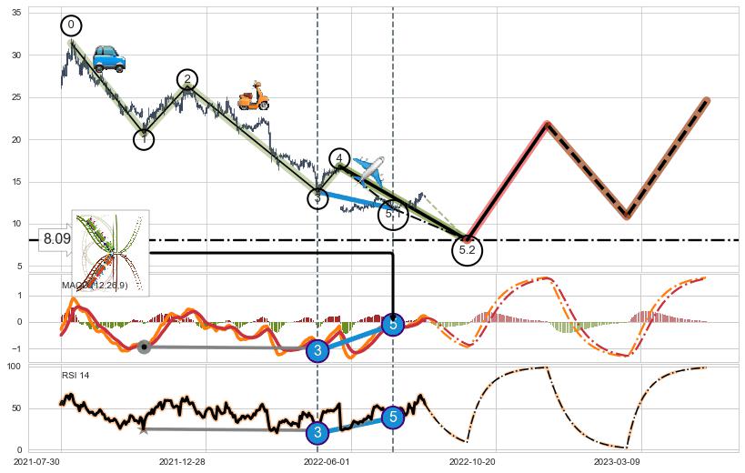 ➣ 5.1: 预测当前第5浪位置(2022-07-13, 11.79),仍然有下跌空间