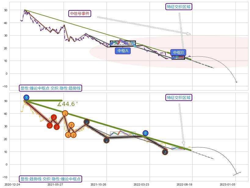 ➣ 缠论中枢点:猜想破位中枢B后持续下拉 → 下跌 → 破位中枢B支撑 → 持续趋势跟踪