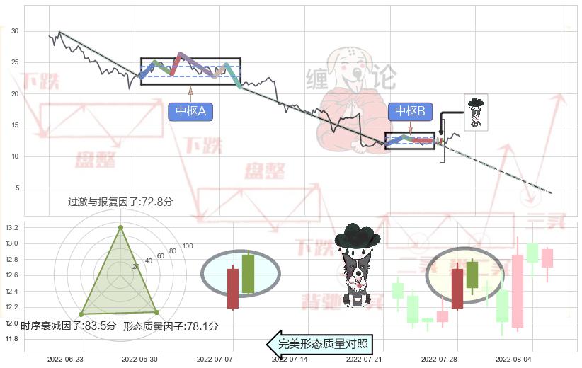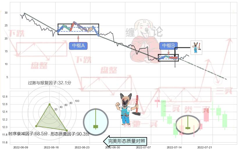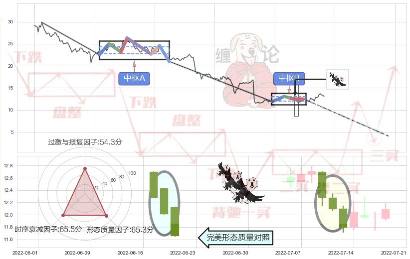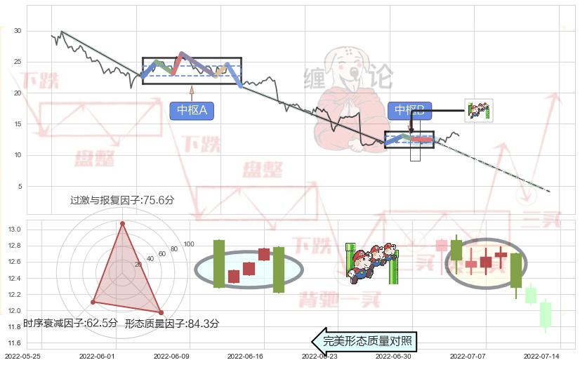 ➣ 【中枢B】:2022-06-14-2022-07-20,中枢由4笔构成,共27交易日, ZG=12.53, ZD=12.49