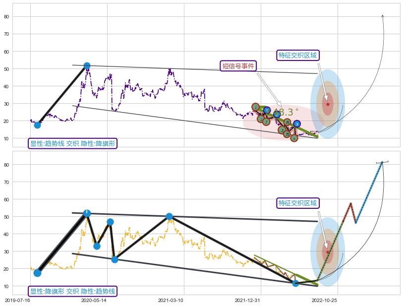 ➢ 趋势线属【短级别信号事件】降旗形属【长级别信号事件】长短周期组合信号事件, 短长事件长度比20.79%