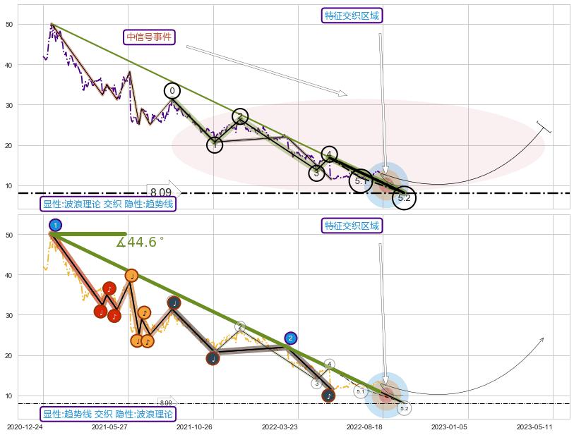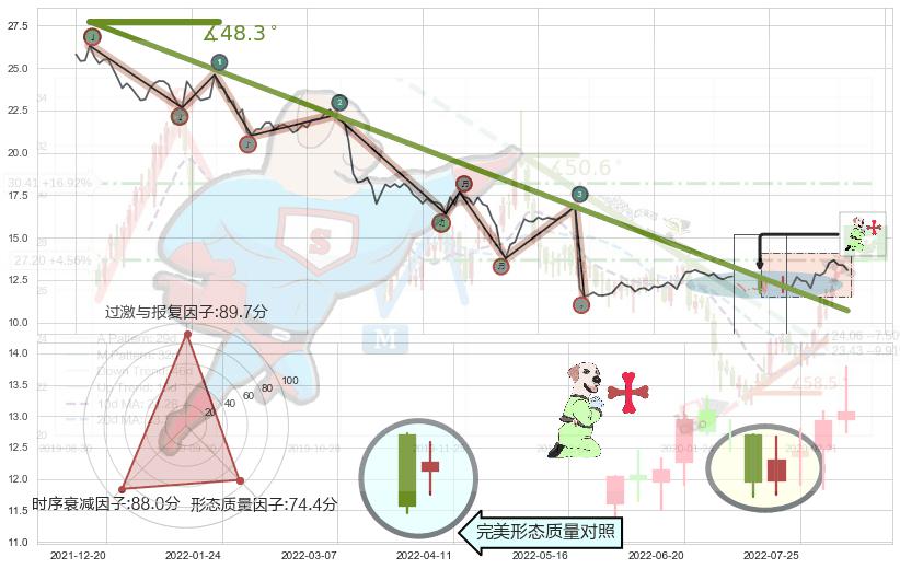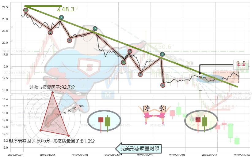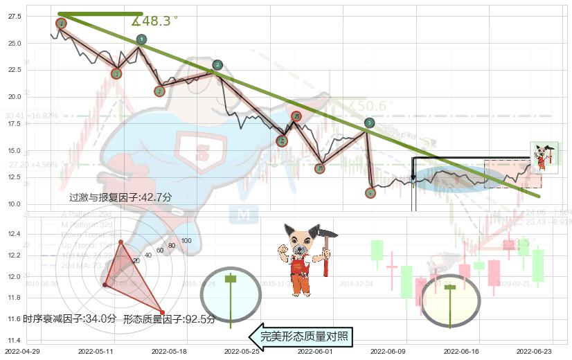 ➢ 2021-12-09-2022-05-27下跌趋势存在反转上涨[机会],其原下跌趋势的阻力位(10.68)已被突破[强支撑信号],原下跌趋势角度: 48.3˚