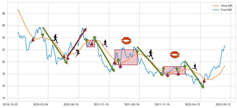 2022-01-26至2022-05-09 慢线与快线呈空头排列, 慢线与快线接触少,无缠绕