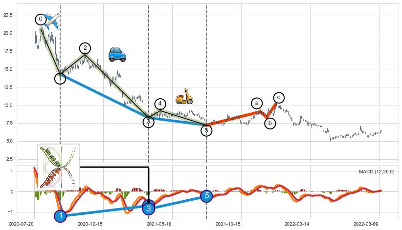➣ 波浪理论:猜想即将止跌 → 上涨 →【拐点】浪5临近 → 大趋势均值回复