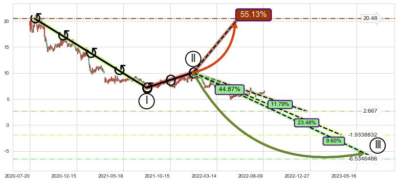 ➣ 循环浪继续向下【平均值】位置(2023-03-31, -1.9338832),匹配聚类样本比例52.33%, 可能性概率23.48%