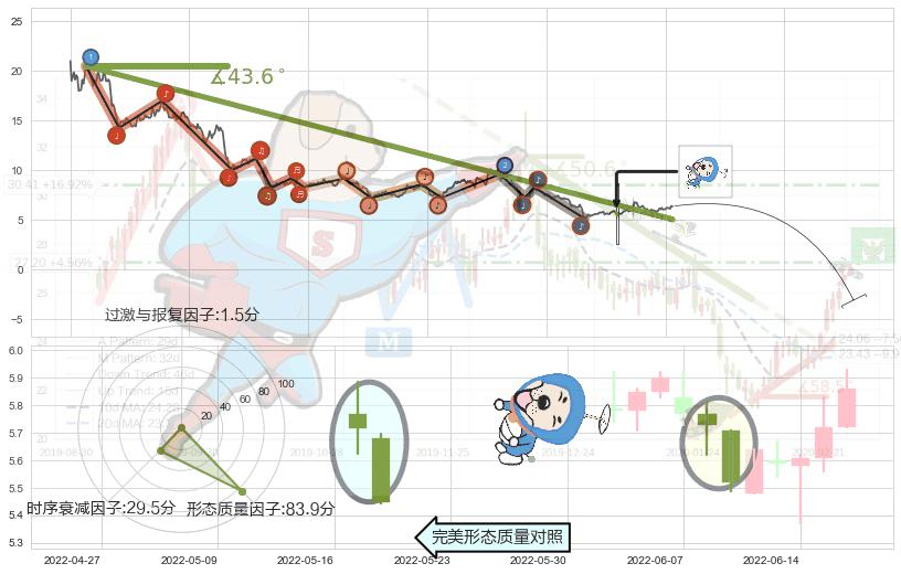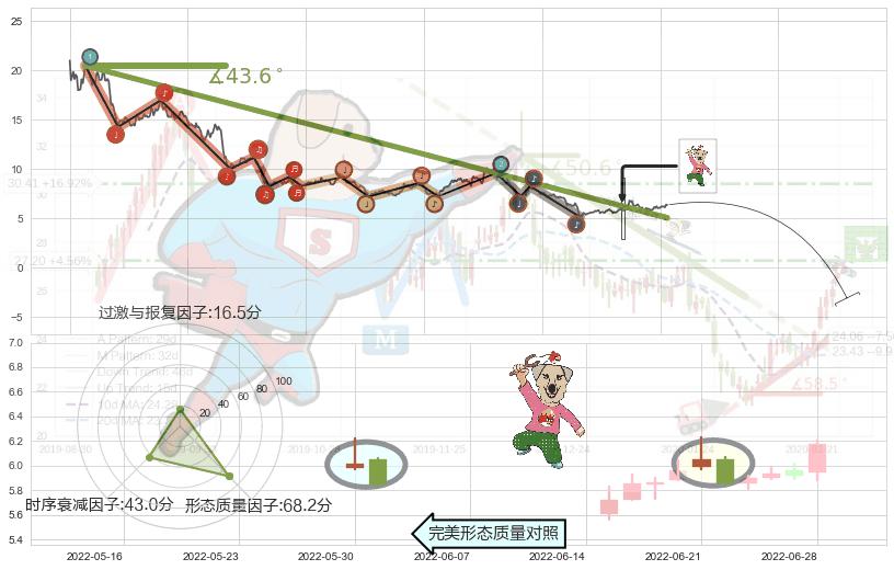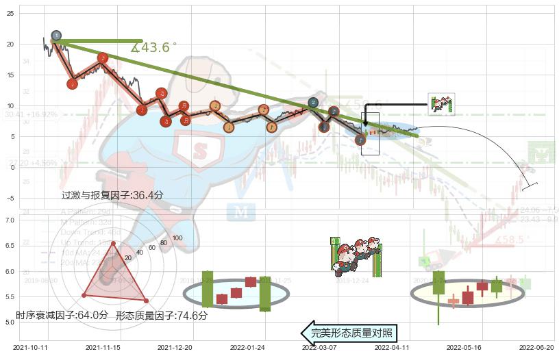 ➢ 🕰 价格走势在2022-03-07至2022-04-06期间形成高档五阴线,残存影响值:-3.58