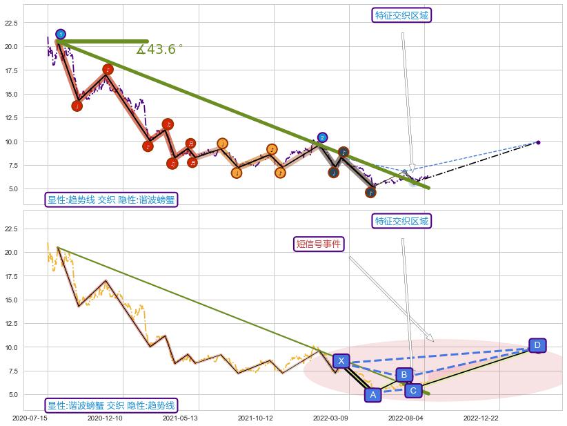 ➢ 谐波螃蟹属【短级别信号事件】趋势线属【长级别信号事件】长短周期组合信号事件, 短长事件长度比24.68%