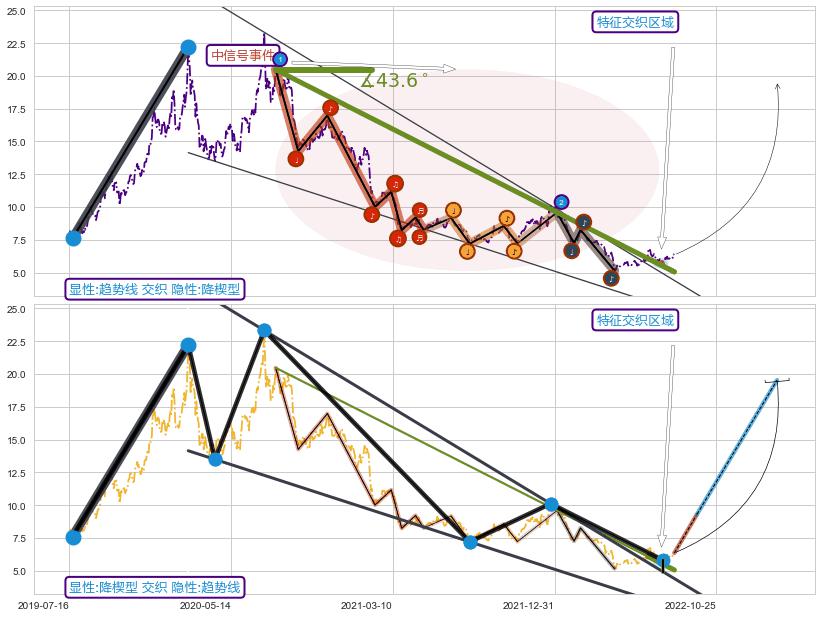 ➢ 趋势线属【中级别信号事件】降楔型属【长级别信号事件】中长周期组合信号事件,中长事件长度比64.84%