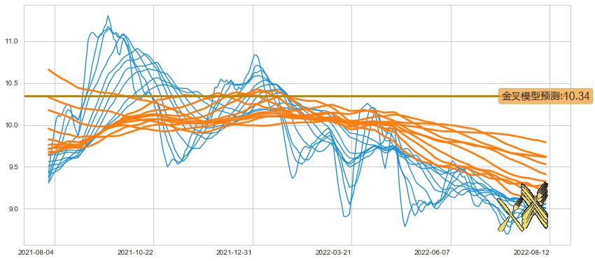 ➣ 70小时均线于(2022-08-04: 9.07)形成【金叉】基于【金叉历史模型】预测金叉后最高波峰价格: 11.14, 金叉后最高价格9.44,尚未达到预测最高波峰价格, 预期继续上涨