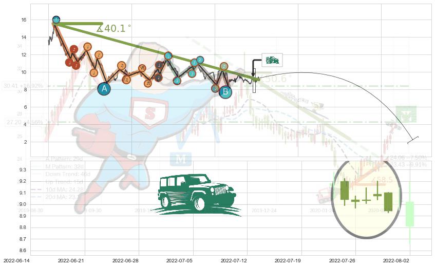 🦴 长线均值回复组合短线趋势跟踪[强阻力信号]2020-08-03-2022-06-06下跌趋势依然成立(下跌趋势跟踪依然存在),短线价格略微上行反弹(均值回复猜想),即将接近下跌趋势提供的未破位阻力价格:9.12。
