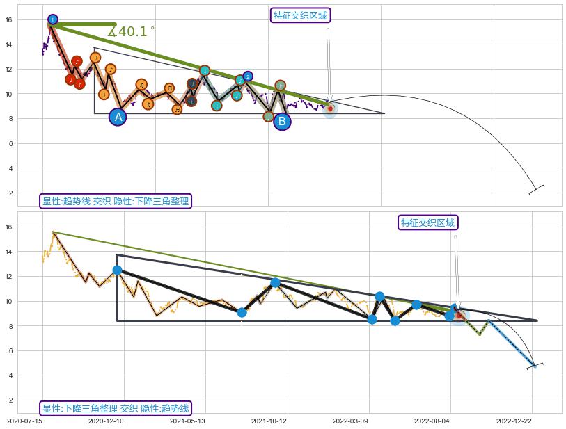 ➢ 【未确认突破,预测即将形成突破】下降三角形整理起点:2020-11-27, 预测突破点:2022-08-31,形态共429交易日