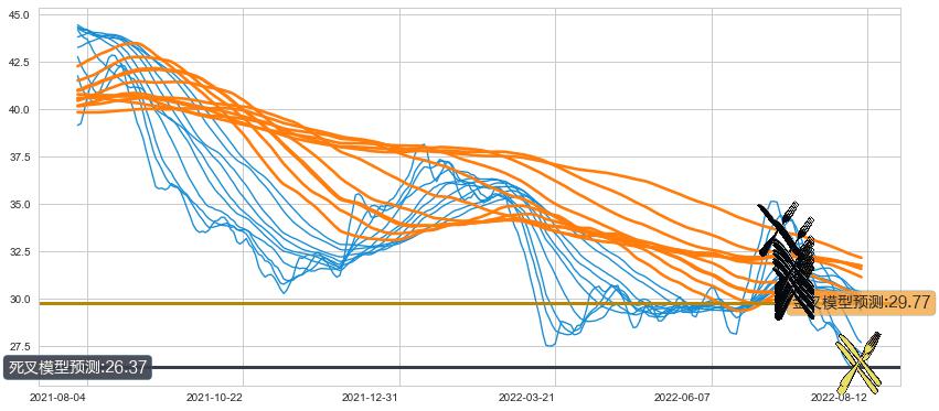 ➢ 30小时均线于(2022-07-13: 31.80)形成【死叉】基于【死叉历史模型】预测死叉后最低波谷价格: 28.25, 死叉后最低价格26.06,已经下跌超出预测最低波谷价格, 预期反弹