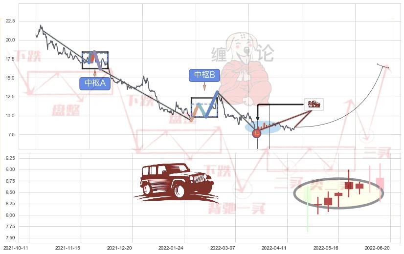 ➣ 缠论买卖点:下降缠中枢AB形成后猜想拐点1买已到达,猜想后续持续拉升(均值回复)