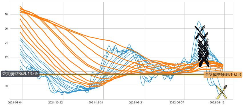 ➣ 120小时均线于(2022-07-11: 21.60)形成【死叉】基于【死叉历史模型】预测死叉后最低波谷价格: 18.74, 死叉后最低价格16.32,已经下跌超出预测最低波谷价格, 预期反弹