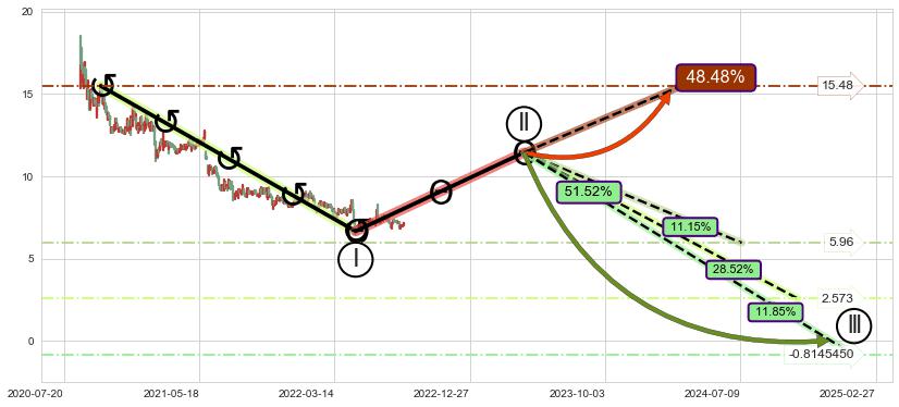 ➢ AI预测: 假定反转启动后, 第❷目标位置(2022-12-21, 7.43)