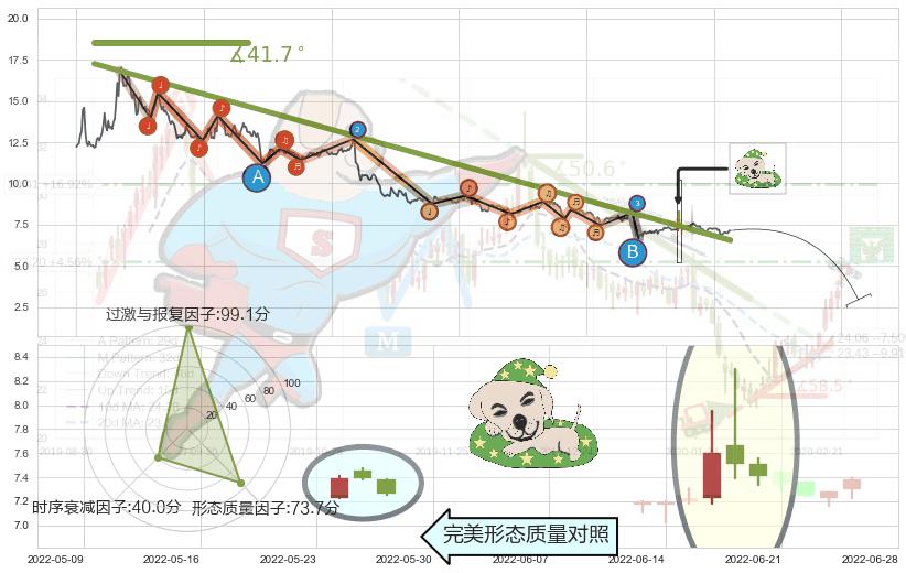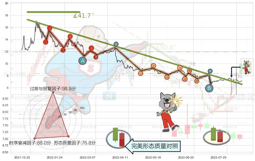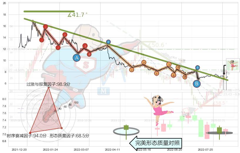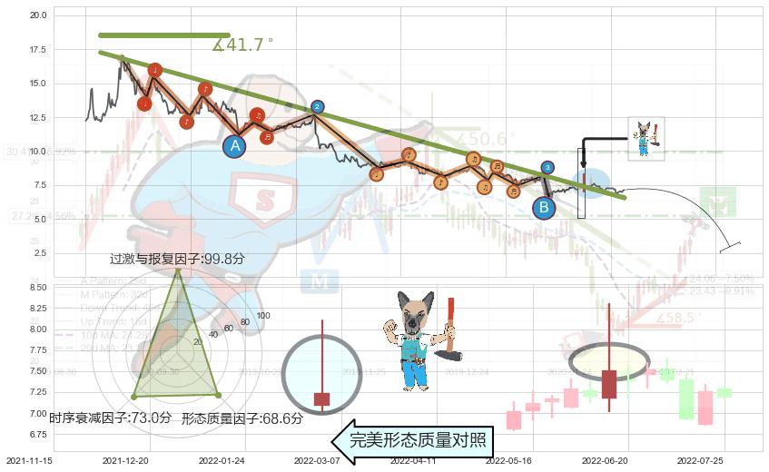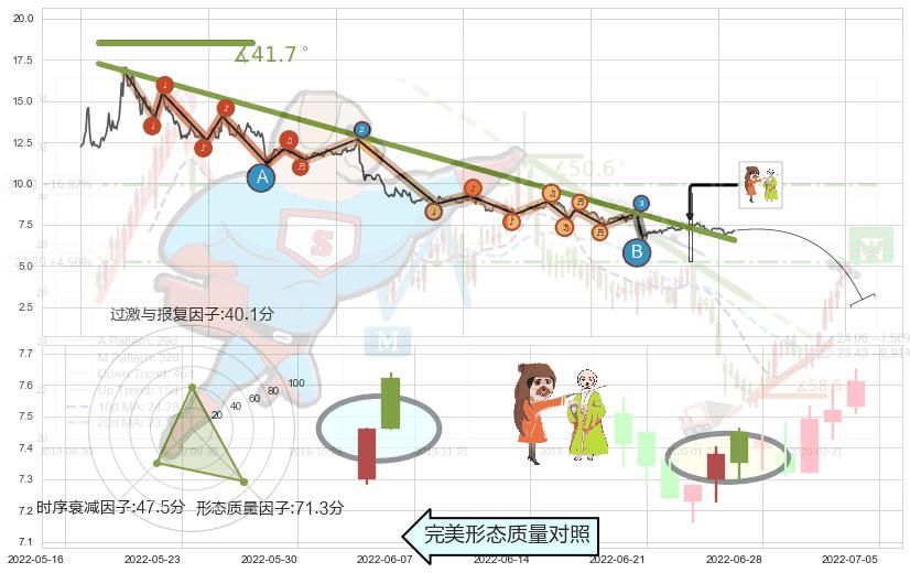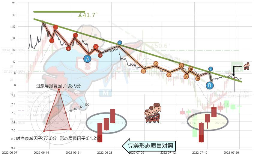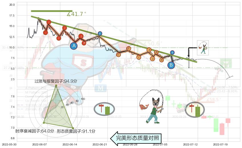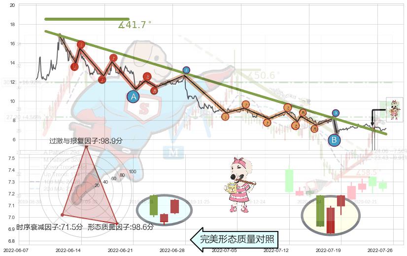 从2020-07-24至2022-07-01,共包含470个交易日,阶段股价下跌-38.23%,阶段股价变动位移路程比: 1 : 17,下跌趋势角度: 41.7
