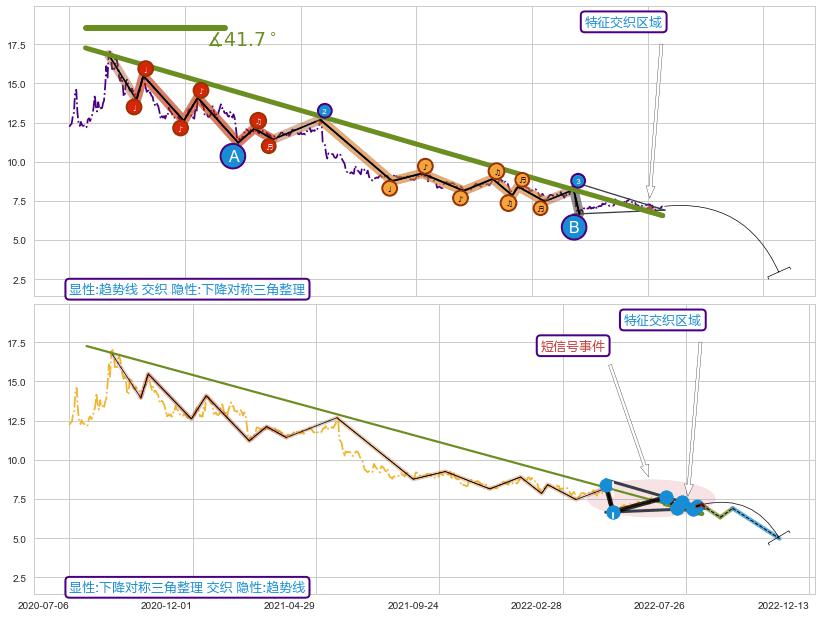 ➢ 下降对称三角整理属【短级别信号事件】趋势线属【长级别信号事件】长短周期组合信号事件, 短长事件长度比15.62%