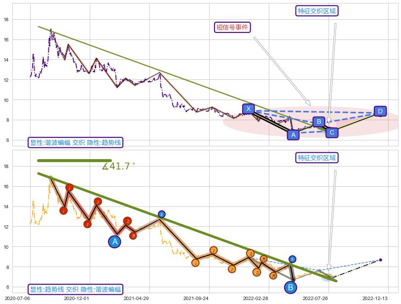 ➢ 谐波蝙蝠属【短级别信号事件】趋势线属【长级别信号事件】长短周期组合信号事件, 短长事件长度比30.83%