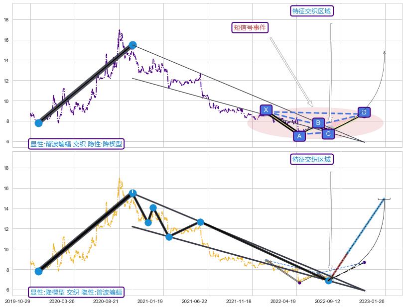 ➢ 谐波蝙蝠属【短级别信号事件】降楔型属【长级别信号事件】长短周期组合信号事件, 短长事件长度比22.36%