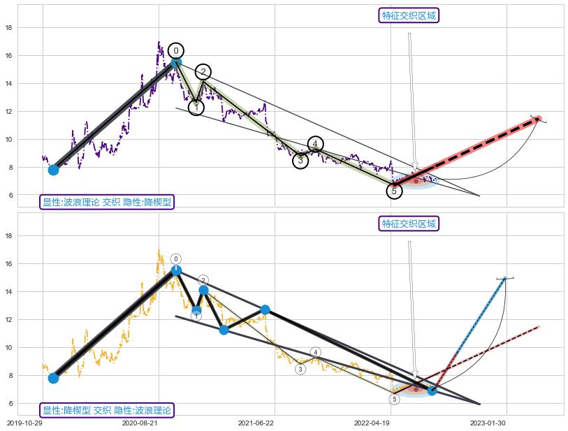 ➢ 波浪理论与降楔型信号事件周期长度级别相同,同周期信号事件