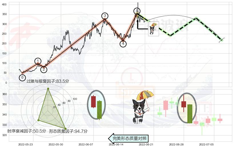 ➢ 高档五阴线 🔜 波浪理论上涨浪:浪5回调拐点 综合量化分数:43.62 【偏空】