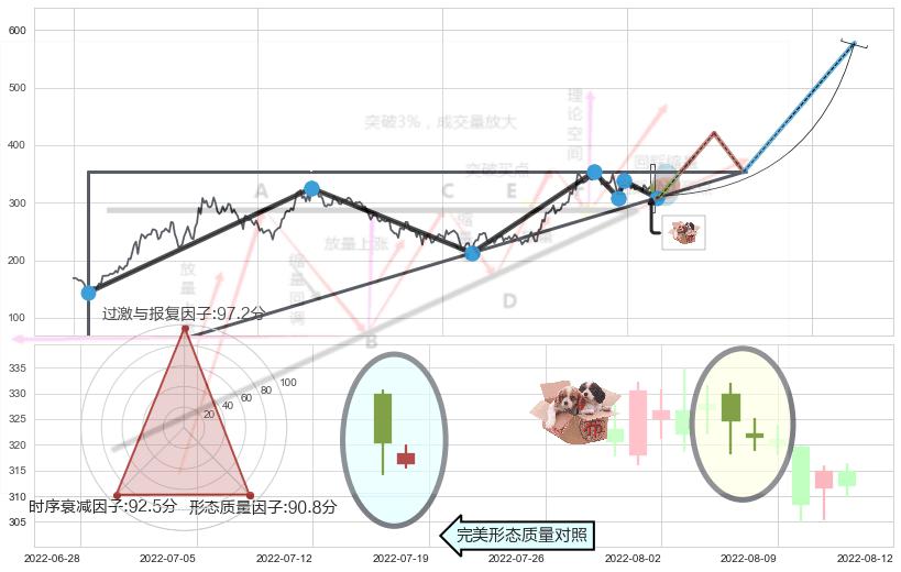 ➢ 🕰 价格走势在2022-08-05至2022-08-08期间形成底部尽头线(上山虎),残存影响值:4.01