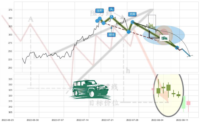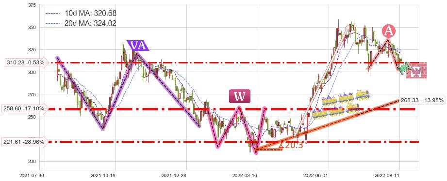 ♘ 支撑价格位258.60,可信任强度85.52%,距离最后交易2022-08-12形成的收盘价格311.93相差 -17.10%