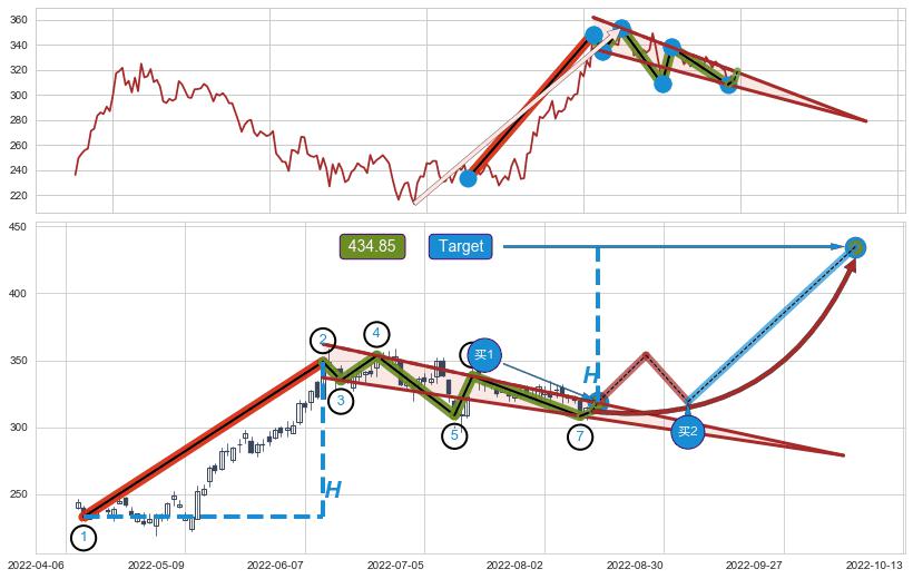 ➢ AI预测: 假定反转启动后, 第❷目标位置(2022-10-27, 330.48)