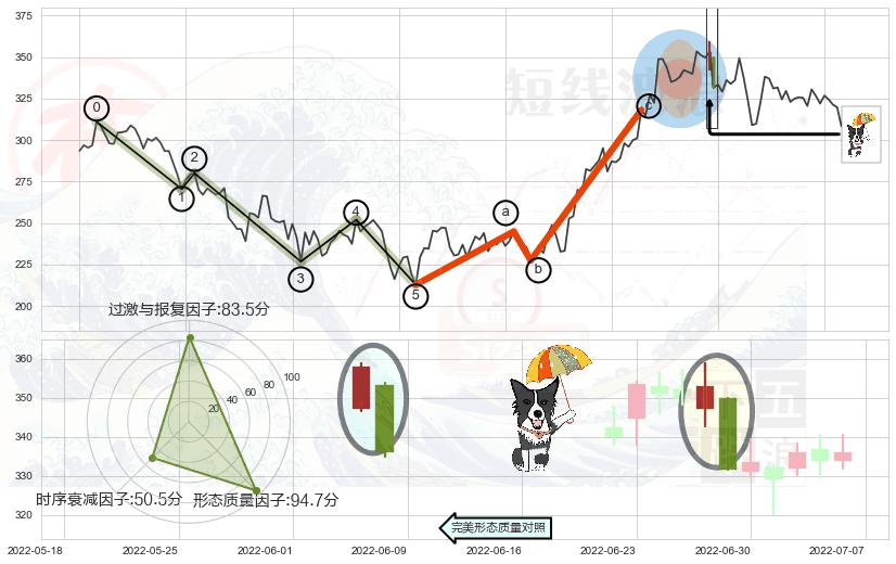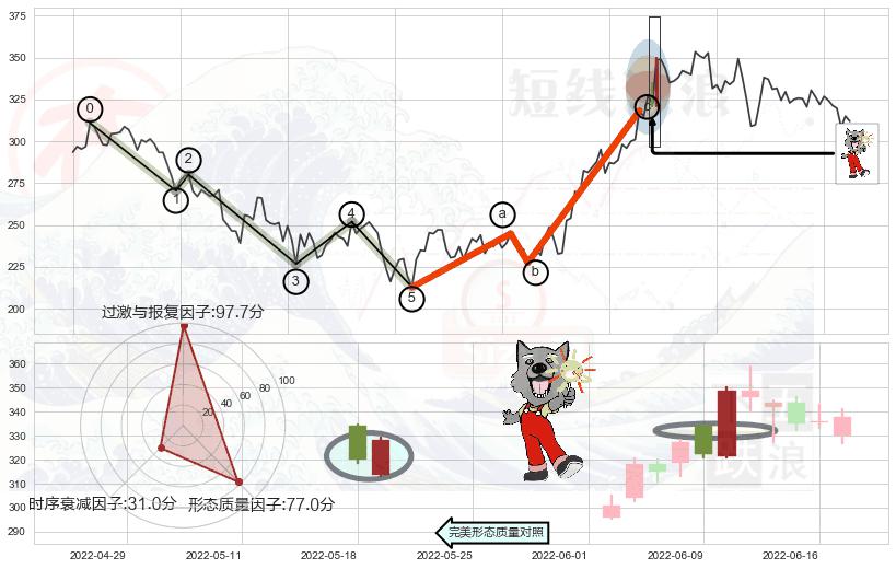 ➢ 🕰 价格走势在2022-06-20至2022-06-27期间形成阴包阳形态,残存影响值:-3.85