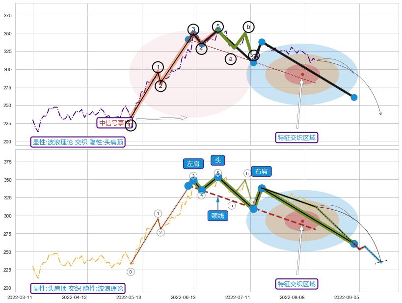 ➢ 头肩顶属【短级别信号事件】波浪理论属【长级别信号事件】长短周期组合信号事件, 短长事件长度比17.67%