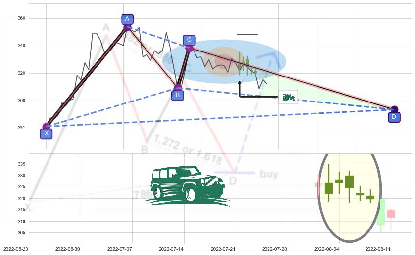 ➣ 未完成【伽利】形态起点X: 2022-05-24, 已到达C点: 2022-07-15, 预测最终D点: 2022-09-28, 共89交易日