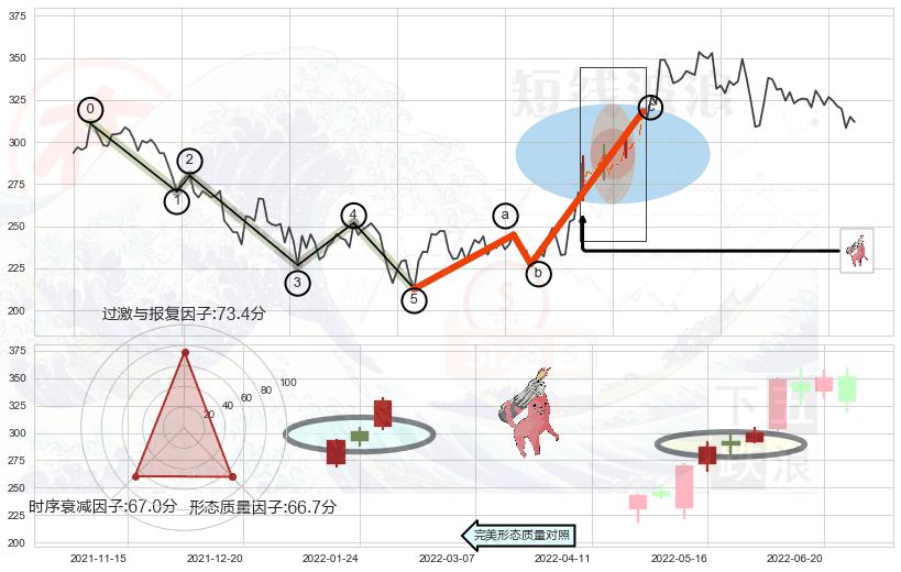 从2022-03-23至2022-07-12,共包含74个交易日,阶段股价上涨25.45%,阶段股价变动位移路程比: 1 : 6