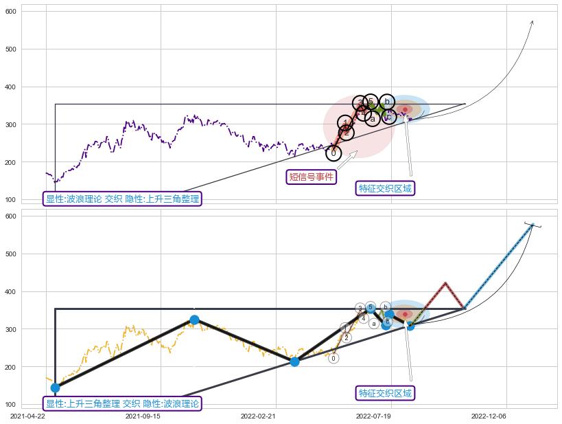 ➢ 波浪理论属【短级别信号事件】上升三角整理属【长级别信号事件】长短周期组合信号事件, 短长事件长度比14.47%