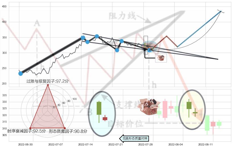 ➣ 【仅预测突破】最后价格:311.93与预测突破价格:319.05→【空间临近】后续最小【整理】第一目标价格→(2022-10-13: 434.85 )