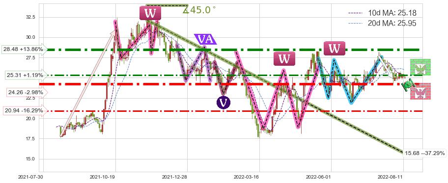 ♘ 阻力价格位25.31,可信任强度67.63%,距离最后交易2022-08-12形成的收盘价格25.01相差 +1.19%