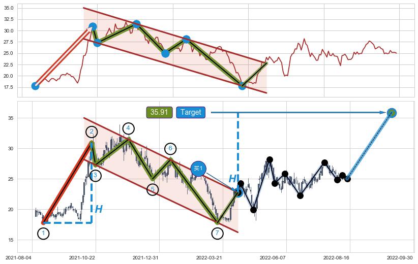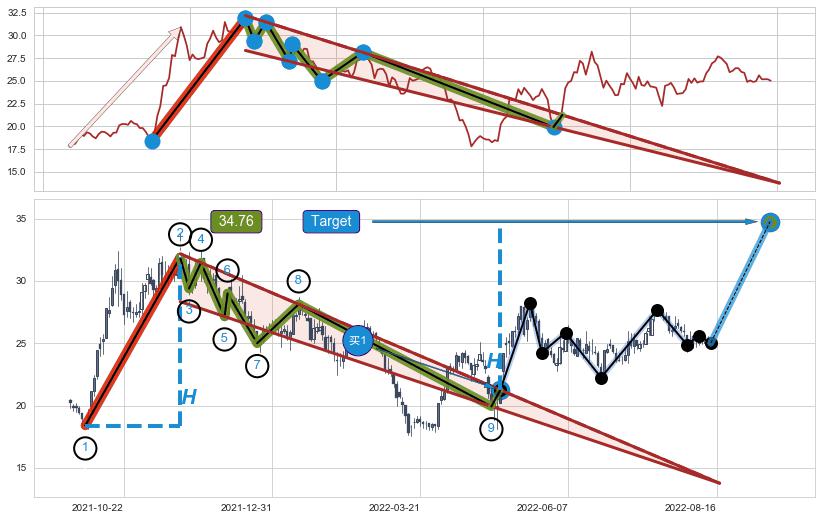 ➣ 最小中继整理涨幅→𝐇: 13.14 (𝐇旗杆的长度:旗杆起点→顶点)