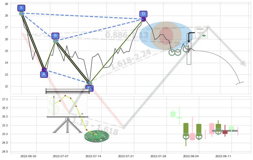 ➣ 已完成【鲨鱼】形态起点X: 2022-05-18, 终点D: 2022-07-19, 共44交易日