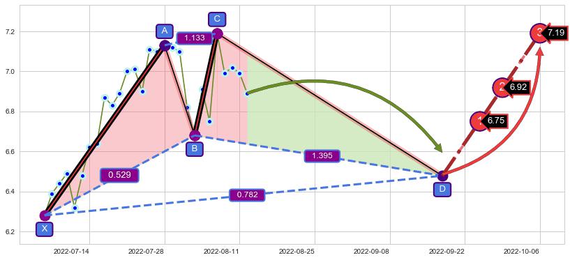 ➣ 未完成【赛福】形态起点X: 2022-07-06, 已到达C点: 2022-08-08, 预测最终D点: 2022-09-19, 共54交易日