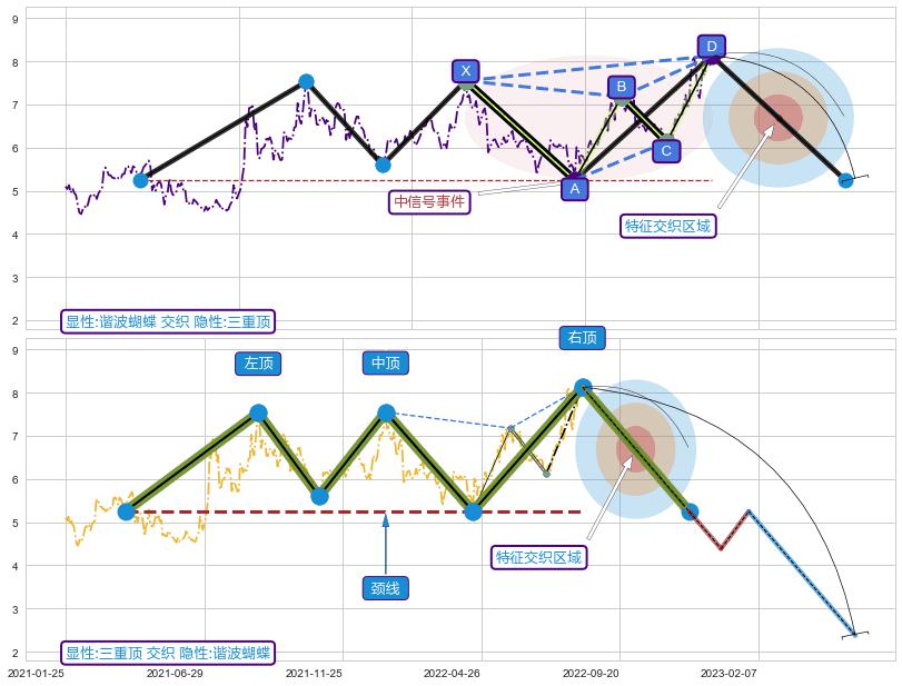 ➢ 谐波蝴蝶属【中级别信号事件】三重顶属【长级别信号事件】中长周期组合信号事件,中长事件长度比39.18%