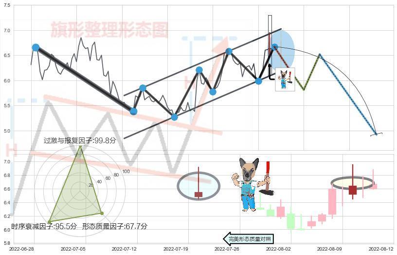 ➣ 【未确认突破,预测即将形成突破】升⚑旗形起点:2022-03-10, 预测突破点:2022-08-23,形态共113交易日