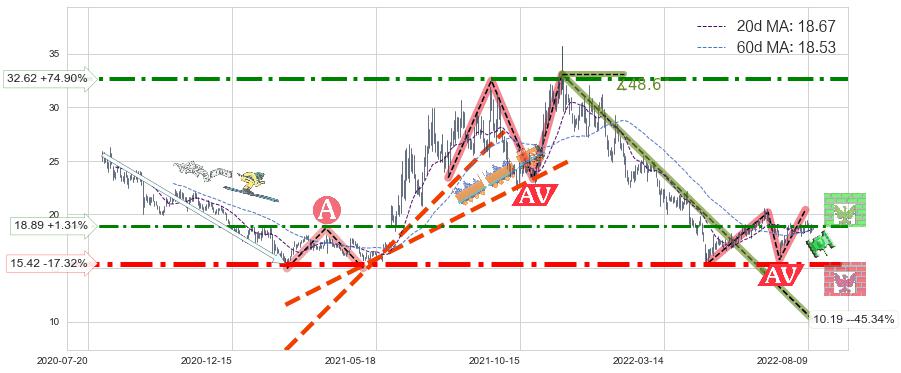 ➣ 【仅预测突破】最后价格:18.65与预测突破价格:18.00→【空间中等】后续最小【反转】第一目标价格→(2022-10-28: 6.92 )