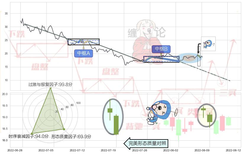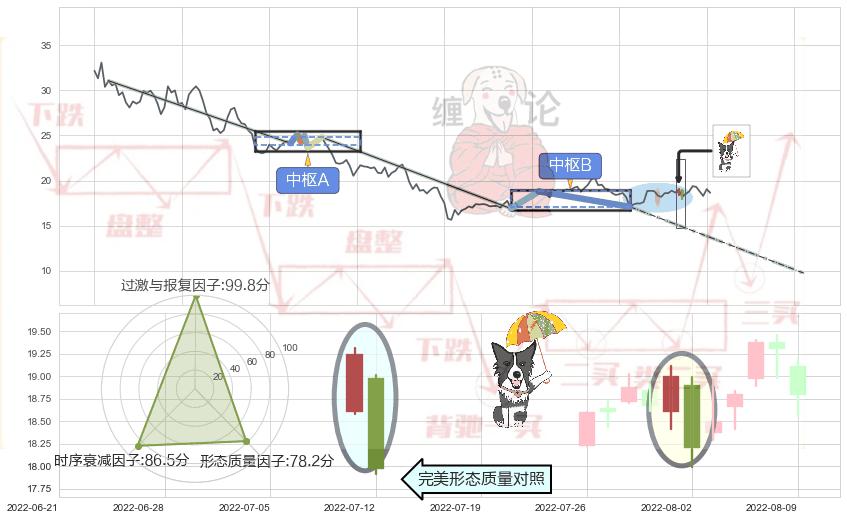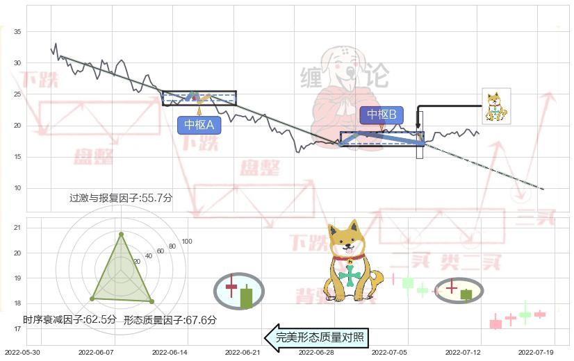 ➣ 【中枢B】:2022-05-24-2022-07-12,中枢由3笔构成,共35交易日, ZG=18.80, ZD=17.10