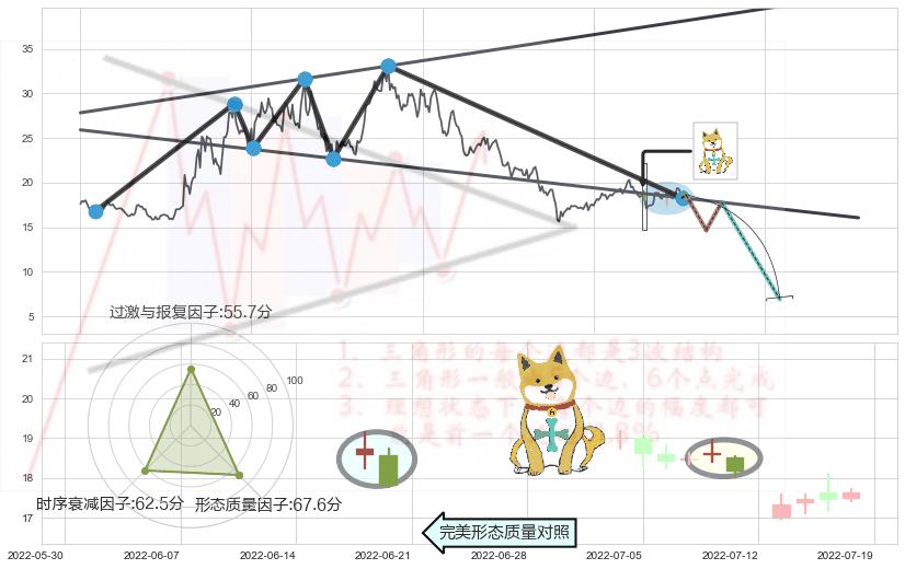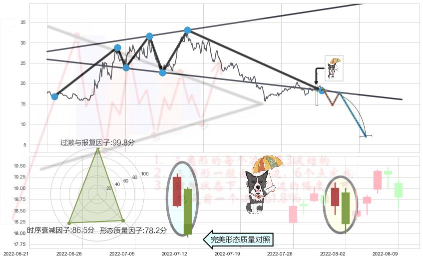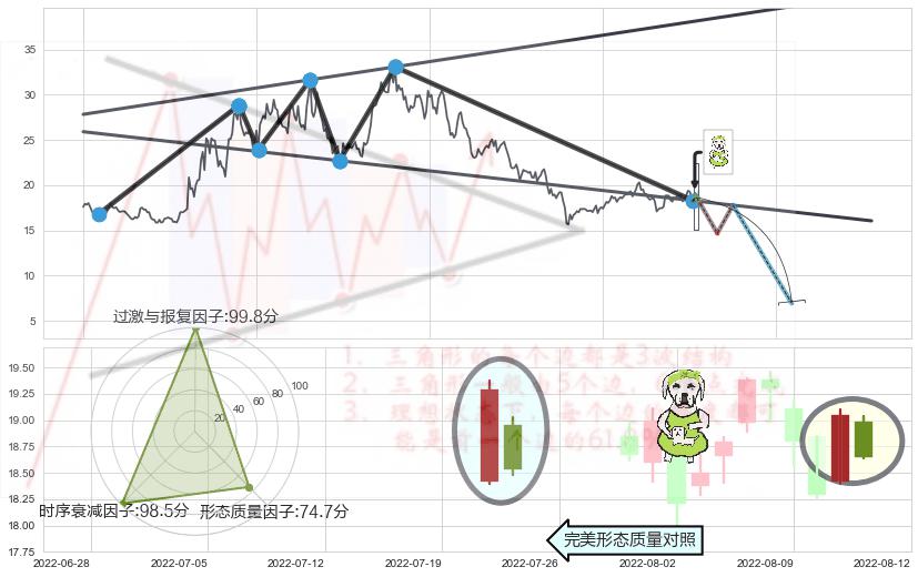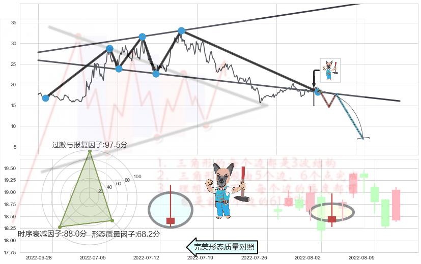 ➣ AI智能: 预测【大方向抉择→空方占优】扩散三角形反转向下突破,预测将在2022-08-16突破颈线
