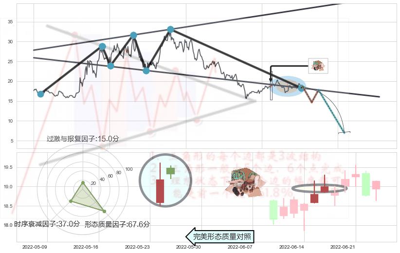 ➢ 🕰 价格走势在2022-06-15至2022-06-16期间形成顶部尽头线(下山虎),残存影响值:-1.99
